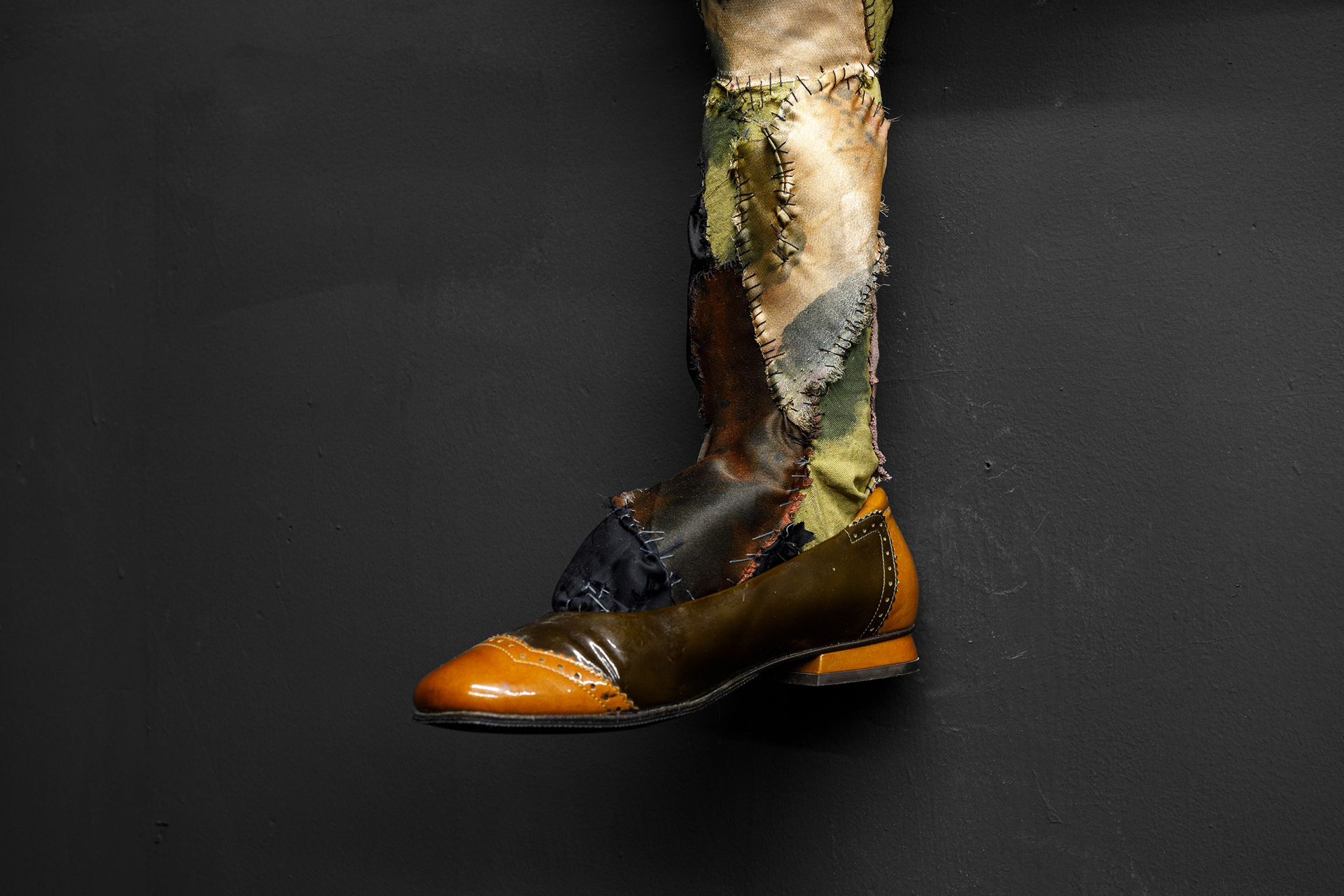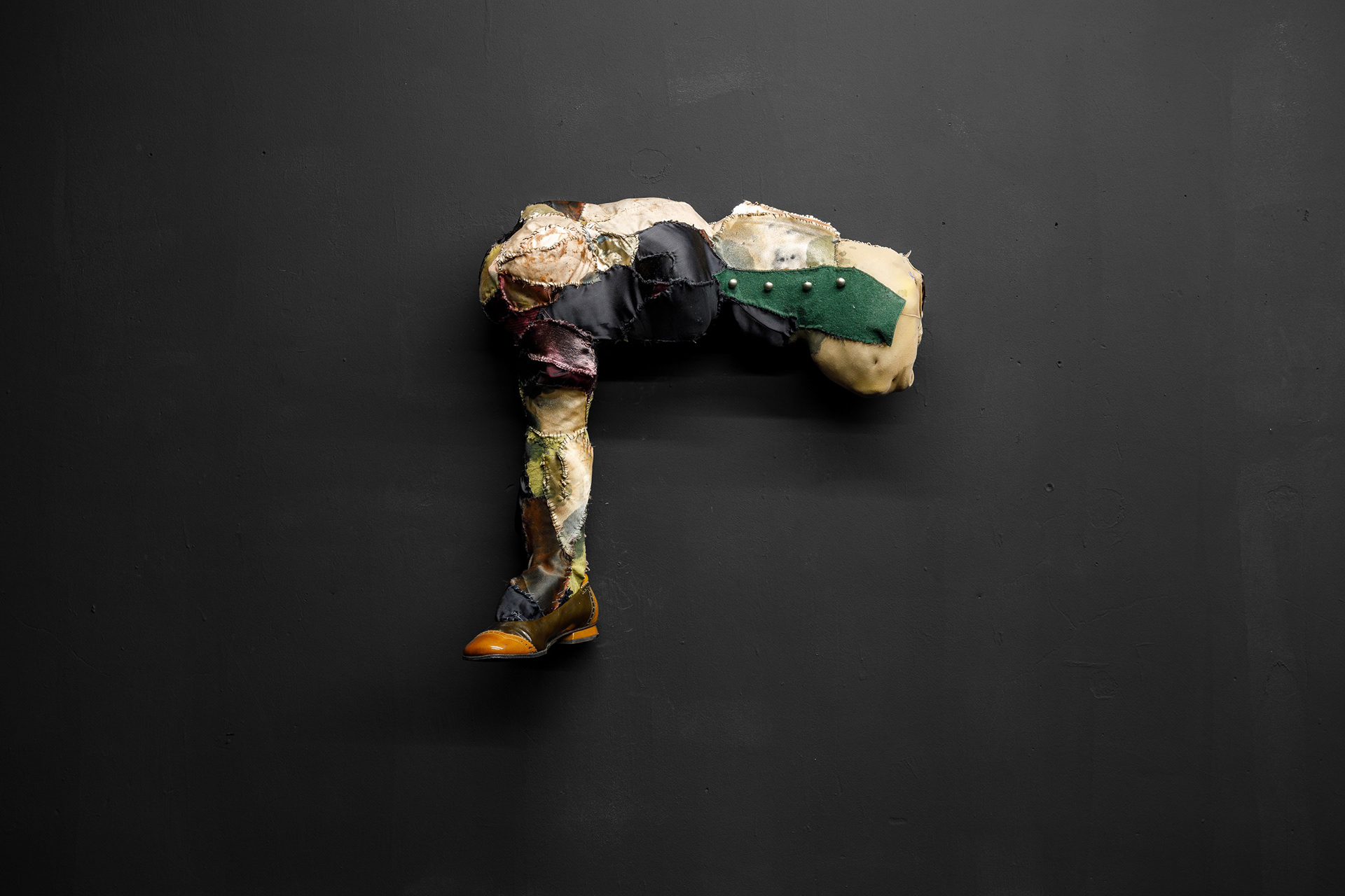 TEXTILE, wood, foam rubber, sintepon, acrilic paint, silk thread, shoe